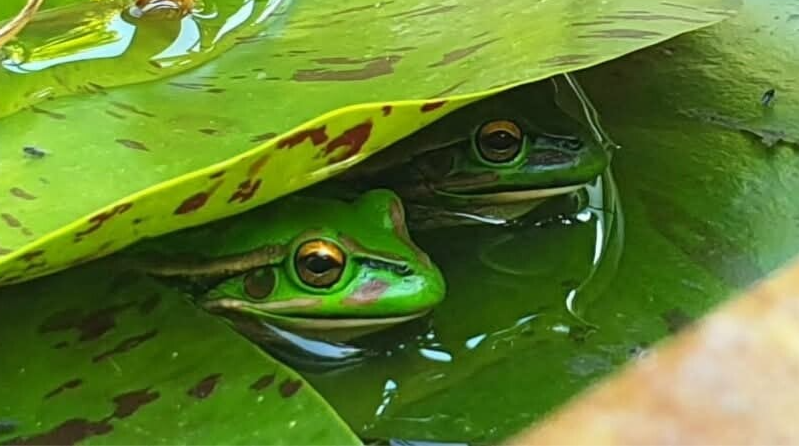 The Green and Golden Bell Frogs that live wild and free in my garden by the pond — my very own backyard frog paradise — never fail to captivate me. I wander out to visit them many times a day, and when winter comes and they disappear into hibernation, I miss them terribly. I never tire of watching them, and seeing them again in Spring is the most joyful delight.